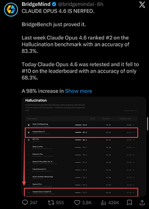 Hah, interesting. I am also noticed some kind of „nerf” Opus 4.6. Anyone else?