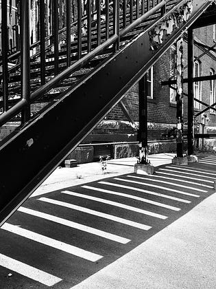 I stopped to take a picture of the slats of light and shadow cast by a metal staircase. I was mesmerized.