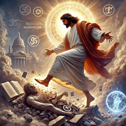 Had AI make a pic of Jesus crushing secularism with his foot.