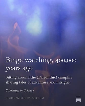 The quest for fire. With its control came safer nights, better food – and, it seems, the origin of The Story.