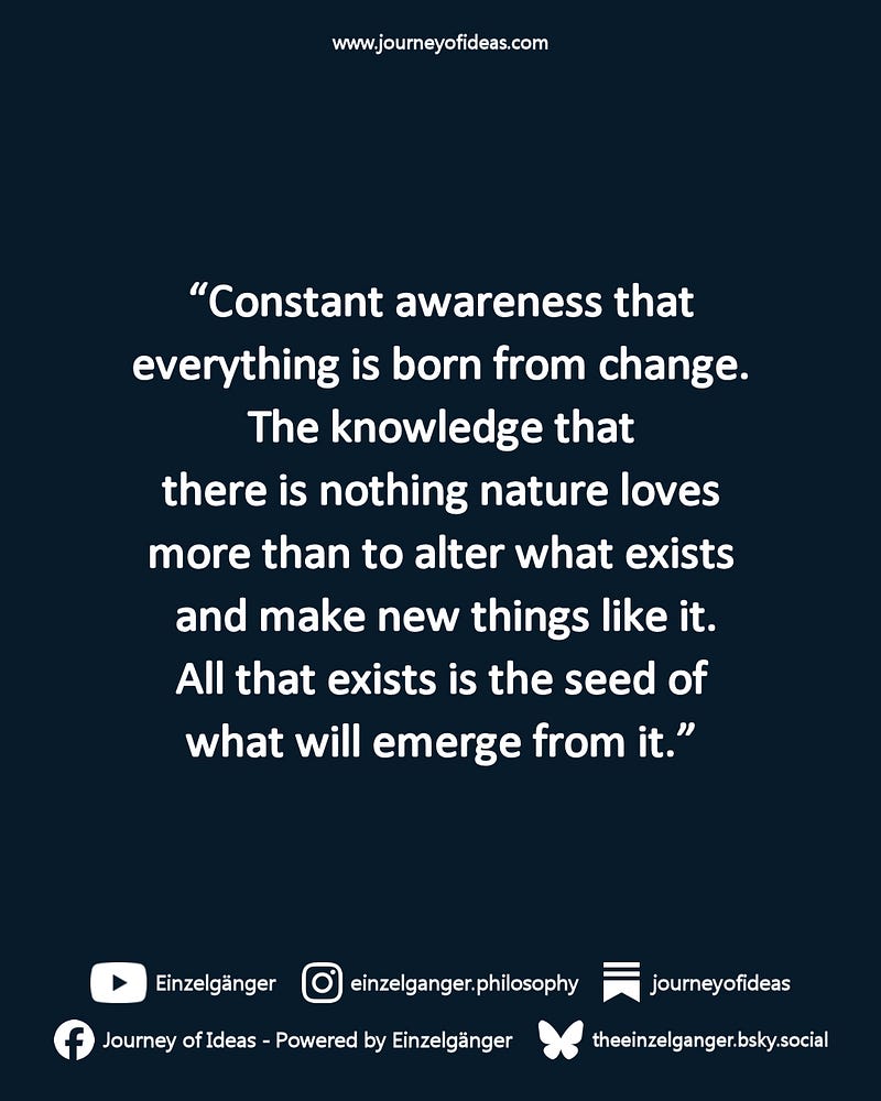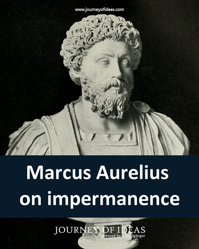 From reading his ‘Meditations,‘ we see that Marcus Aurelius often reminded himself of the transient nature of all things. The contemplation of change seemed to be a vital part of his personal, Stoic practice.