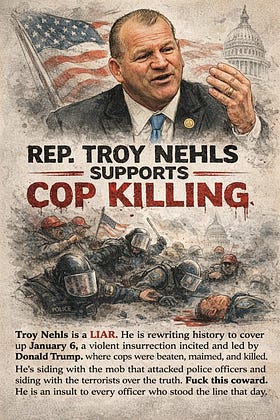 By minimizing that violence, attacking the investigators, and shielding the man who unleashed it, Nehls is siding with the perpetrators over the cops who were assaulted in defense of the Constitution.