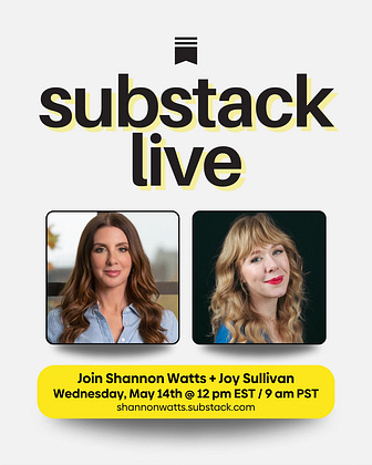 Join me tomorrow on Substack Live as I talk with Joy Sullivan. Joy is a poet, teacher, and author of the national bestseller, "Instructions for Traveling West." She has led international writing retreats, served as the poet-in-residence for Wexner Center for the Arts, and is the founder of writing community, Sustenance. We'll be going live at 12pm EST / 9am PST on 5/14 right inside the Substack app.