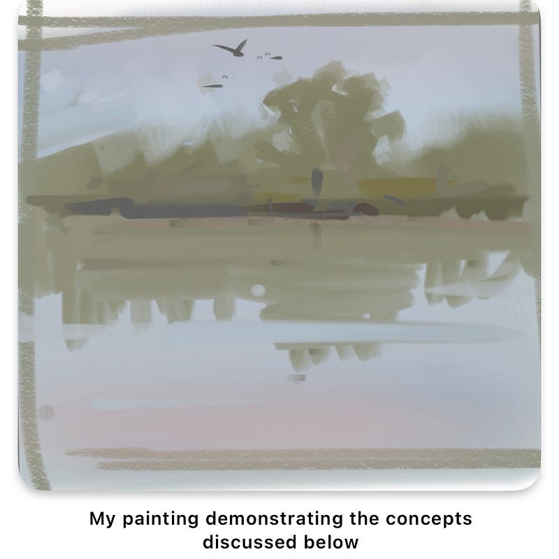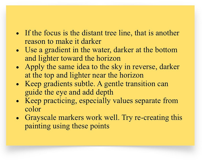 Alongside it, I made a small demo painting to walk through the ideas from the critique, focusing on simplifying shapes, organizing values, and painting reflections in water.