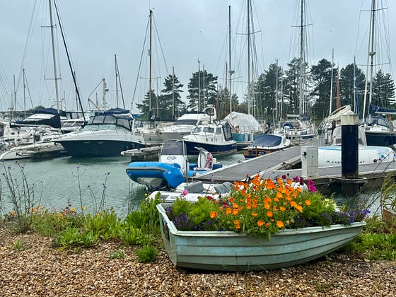Once or twice a week I have to hang up my writing hat and become Gladys the Chambermaid, cleaning, ironing, scrubbing the loo, that kind of malarkey, ready for the next guests at our holiday home. I always feel so bad for them if it’s pouring down outside. Still, the flowers are cheery and I believe sunshine might be back tomorrow.