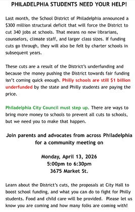 welp there’s a town hall in Philly happening about what’s going on with the schools. posting this here because this is my only social media, and idk if y’all know but I’m in grad school for special education.