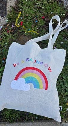 A stained tote bag