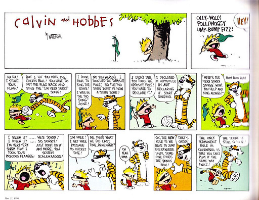 I’ve just found some ancient Vedic scriptures on Līlā (लीला) written in an obscure Sanskrit dialect: Kalavindya-Kanduka-Līlā (कलविन्द्यकन्दुकलीला), otherwise known as Calvinball.