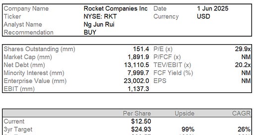 NG Jun Rui, our Z Club VIP member has initiated a "BUY" recommendation for Rocket Companies Inc. based on its unique position as an end-to-end mortgage solutions provider in the U.S., strengthened by its acquisitions of Redfin and Mr. Cooper and powered by secular industry tailwinds after a long-stagnant housing market.