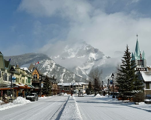 Today in Banff, Alberta. I’ll admit I was struggling when I saw the snow flying again this morning. But then the skies cleared, the sun began to warm the air, and it was so darn beautiful, I just kept walking.