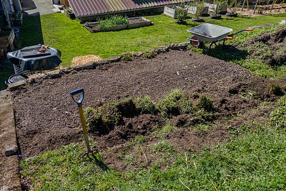 My new garden hadn’t seen a lick of proper work in years before I got here — so now I’m out there turnin’ over one bed after another.