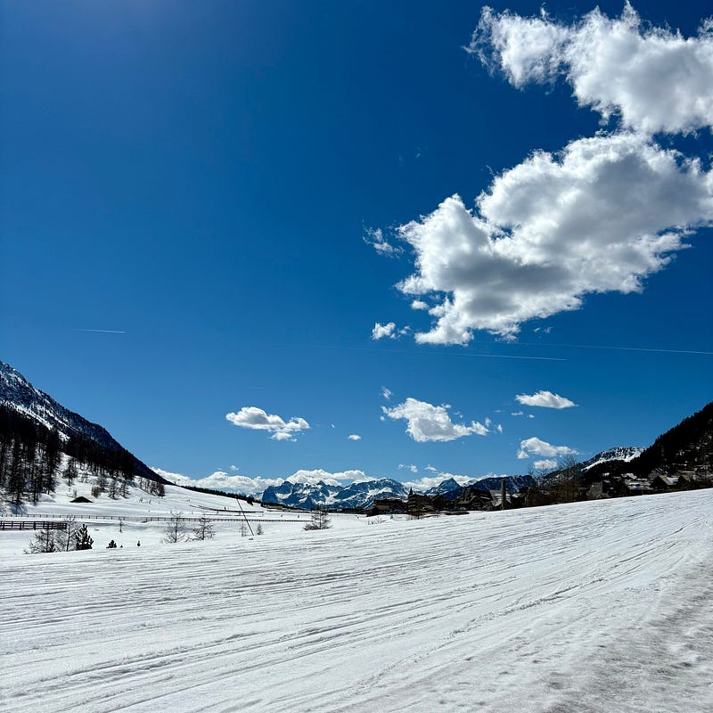Volví a Italia desde Portugal. Crucé los Alpes por el Col de Montgenèvre, a 1850 m, y esta vez encontré más nieve.