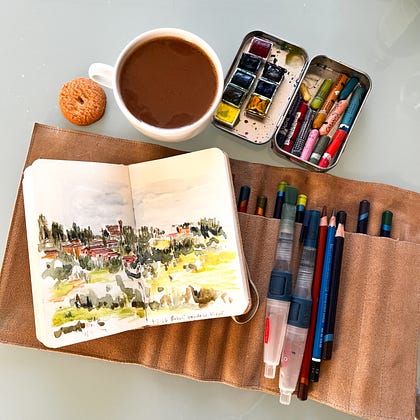Ciao tutti! Iām in Italy for a few weeks and sharing a pic of my small travel art kit š š·š