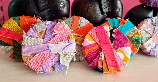 When it's grey outside the best thing to do is raid the fabric scrap bag and make something tactile and colourful - a real mood booster!