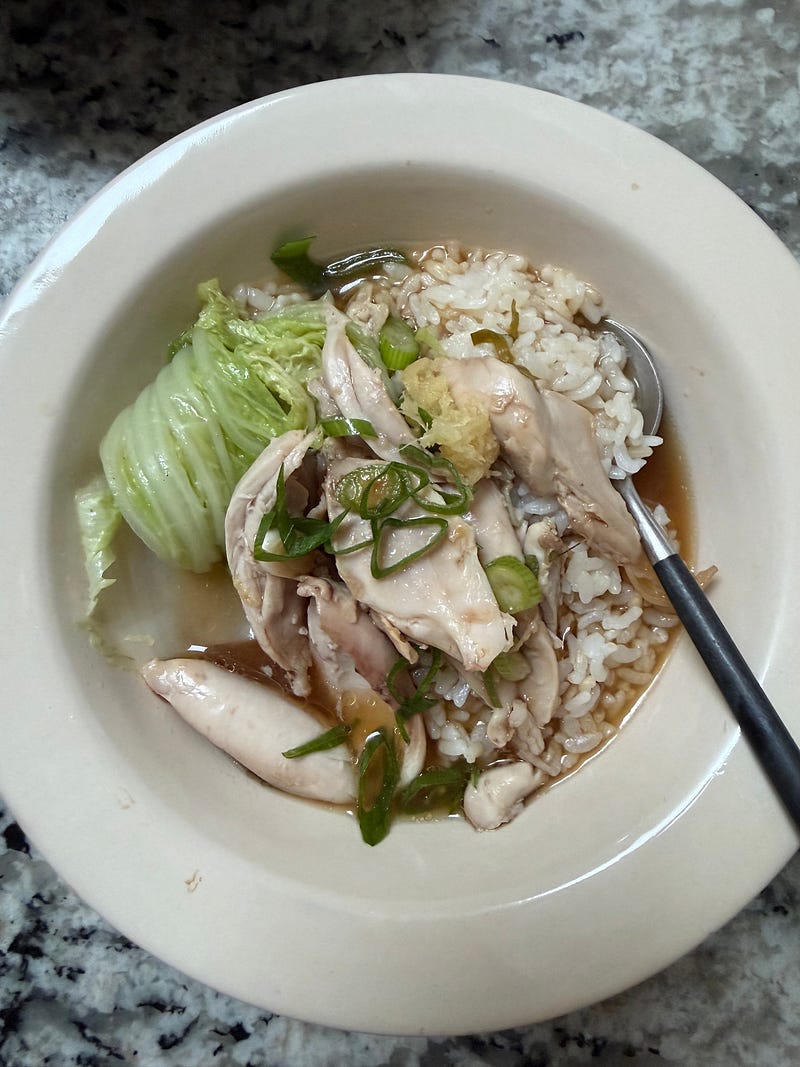 Later this week, a very restorative ginger chicken brothy rice!