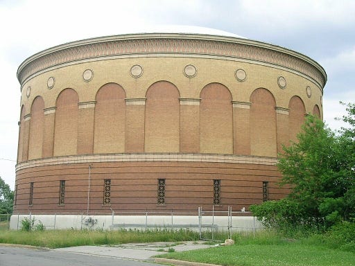 This is a real building in Baltimore — the Curtis Bay Water Tank. NO FILTER, NO PHOTOSHOP. Built by Depression-era craftsmen during a time of civic pride in infrastructure. It appears in ch.11 of my novel FLUX, which I’ve just been polishing to workshop with my writing group. That chapter comes out June 5. You can read through ch.6 now on my Substack.