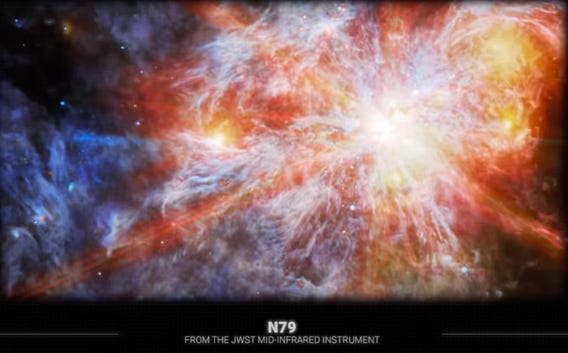 Feast your eyes on this image of nebula N79 from the James Webb Space Telescope, that marvel of human ingenuity, creativity, and perseverance. Humans can do amazing things, despite being sometimes mercurial, selfish and destructive. I’ll admit to having outsized Maryland pride about JWST — as our very own Goddard Space Flight Center (GSFC) took the lead to manage, assemble, and test it. In 2009, I taught a graduate architecture studio where we designed a visitors center for Goddard. Our reward was two guided tours of the Goddard facilities — the coolest playground of labs, clean rooms, and maker spaces you can imagine. The brilliance and pride of the people working there was on full display with all their toys.