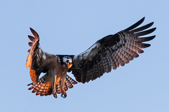 Osprey landing gear in place! The ospreys are back here in coastal Delaware. This one was about to touch down on their nest. Each year they reunite with their mates, rebuild their nest, and both parents will care for the chicks when they hatch.