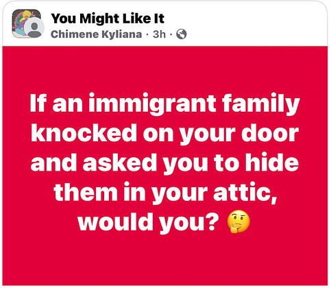 Without hesitation. Without asking for papers. Without pretending I don’t hear the knock. Because I remember a time in this country when survival depended on somebody opening a door for my ancestors and not asking too many questions.