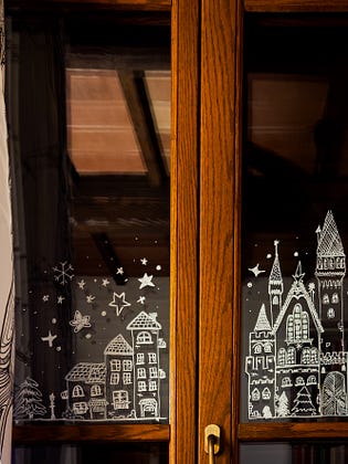 This year I discovered drawing and watercolours can be so relaxing… so I had fun with a chalk pen on our balcony window! A little Christmas magic ✨