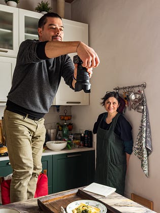 We spent a chilly spring Monday morning testing and shooting a new Easter recipe (coming to your inbox on Wednesday). Tommaso was, as always, precariously balanced on a chair! And I loved having my friend Emanuela over, chatting about cakes and ingredients, and spending a blissful hour practising watercolours.