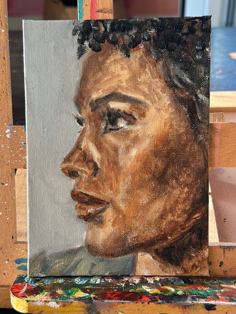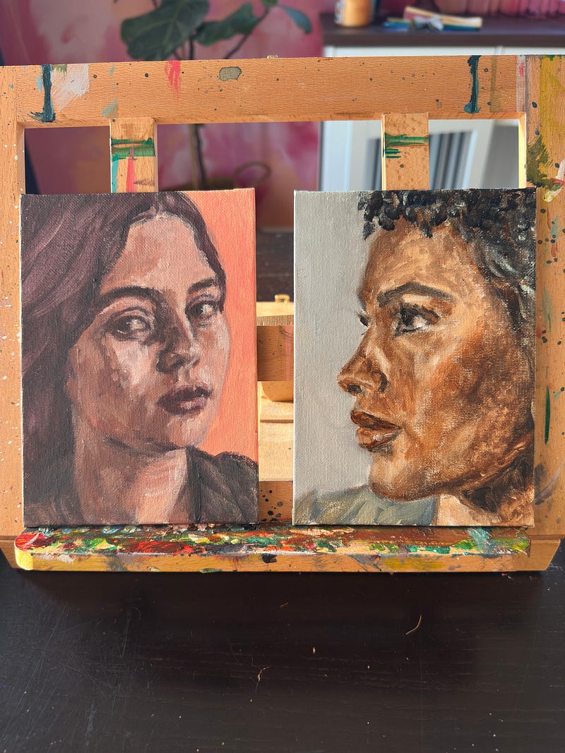This is my first painting using open acrylics, and it felt so so different than regular acrylics (side by side of acrylic piece next to open acrylic piece).