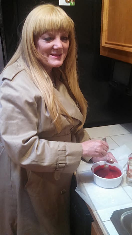 Alison Arngrim (Nellie Oleson from Little House on the Prairie), in my kitchen some years ago, helping make fake blood for a scene we were about to shoot, where she was to kill me.