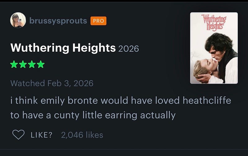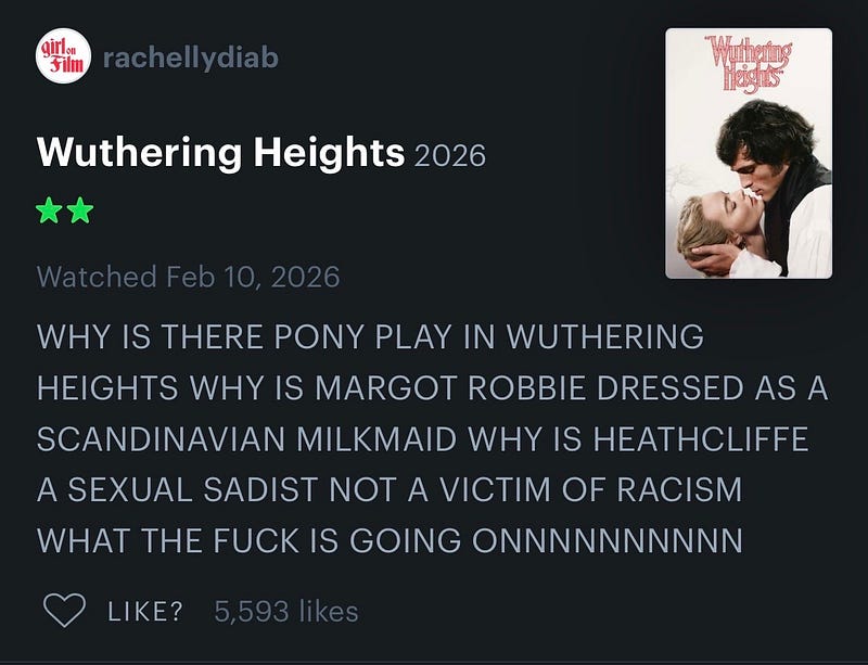 Saw Wuthering Heights. I’m processing.