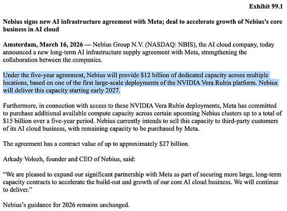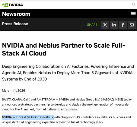 New day, and another neocloud from the special forces of Nvidia's demand receives a $2B investment from Nvidia. This time it’s Nebius.