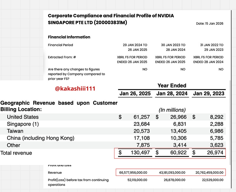 Just to be clear, there are also direct clients of Nvidia that are billed through Nvidia Singapore. So the actual share of revenue Nvidia books from direct customers, rather than through partners, may be even higher than the percentages shown here.
