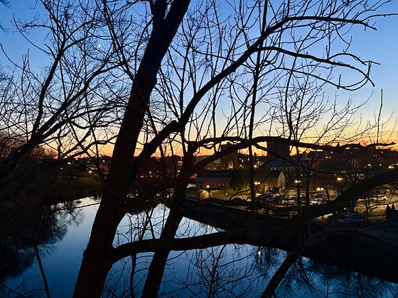 Good evening. Here’s an urban sunset from my balcony. Don’t miss that darling little moon 🌙 hiding between the branches. I’m happy to be here tonight …