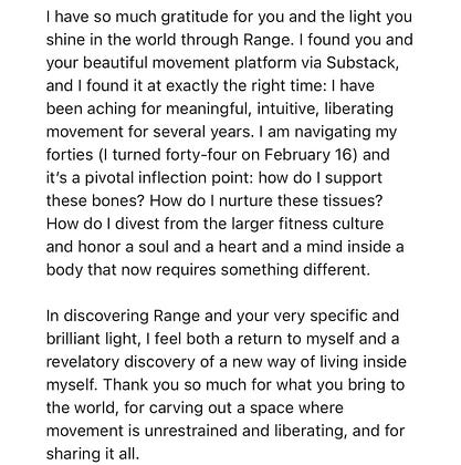 I post tidbits here because it’s joyful AND because I hope that more likeminded friends find their way to Range - like this beautiful person.