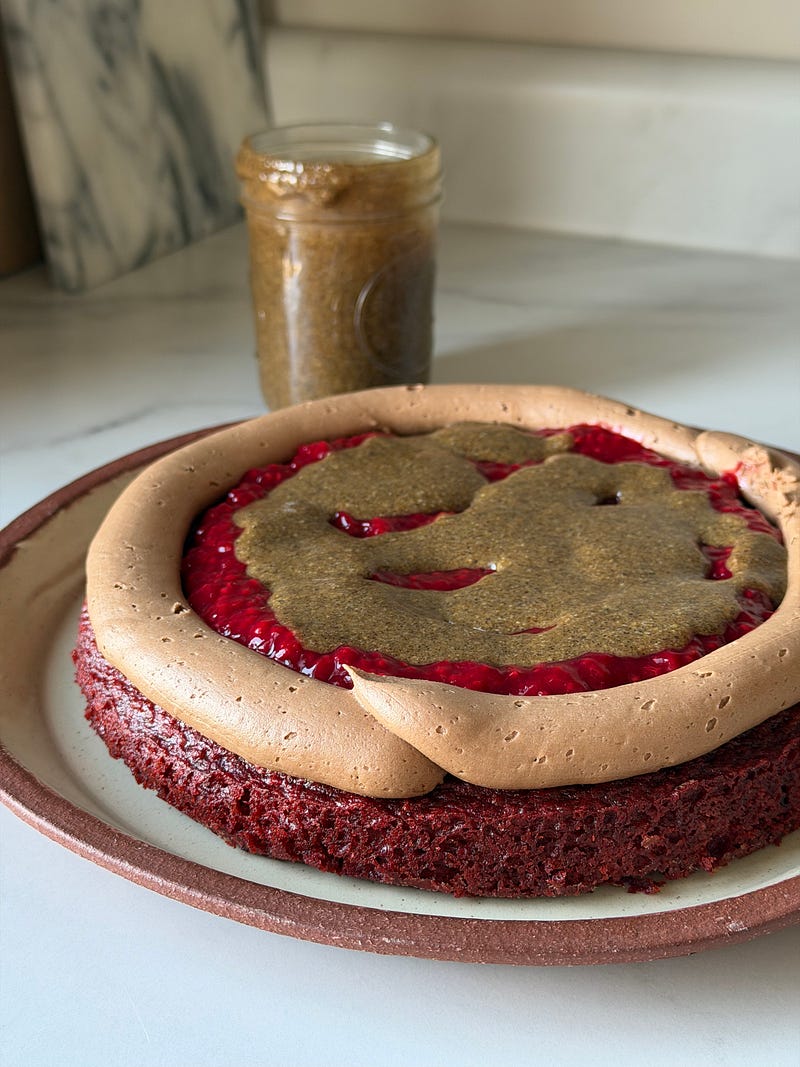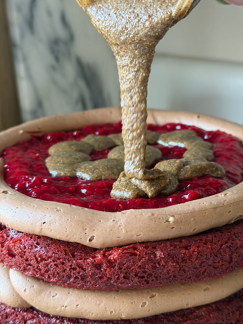 i made the praline too loose, but will make again and share the recipe; it’s giving best ~elevated~ pbj cake i’ve ever had