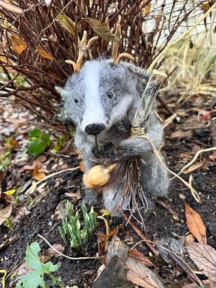 The Imbolc Badger greets them welcome as he calls the Lightbringers on towards Spring