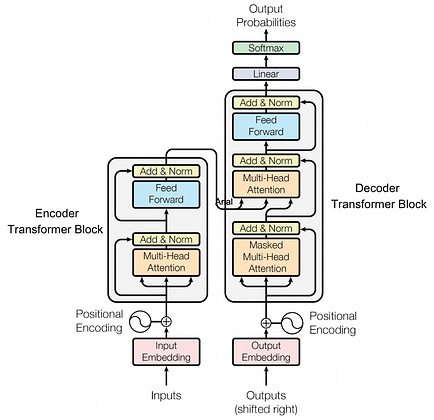 Each encoder and decoder block has its own set of layers called Transformer blocks. While the encoder encodes the input, the decoder not only processes its own sequence but also attends to the encoder’s output, ensuring the generated sequence is closely aligned with the input.
