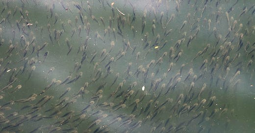 The school of fish I shot on a photo walk around the Providence River one morning. There were thousands of small silver fish just below the bridge and I was totally surprised by how cool this image came out.