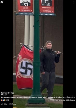 Repost please! This guy was out yesterday in O’Fallon Illinois. Let’s pass this around so his boss can see what a nazi is.
