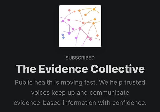 If you're not already subscribed, The Evidence Collective (TEC) is now live on Substack! We came together as an interdisciplinary group of clinicians, scientists and public health communicators over a year ago to fill the information gaps left by the institutional deconstruction we've all witnessed. If you're looking for trustworthy and timely breakdowns of key issues science, medicine and public health, subscribe below (various options depending on your needs, including free access content ones!).