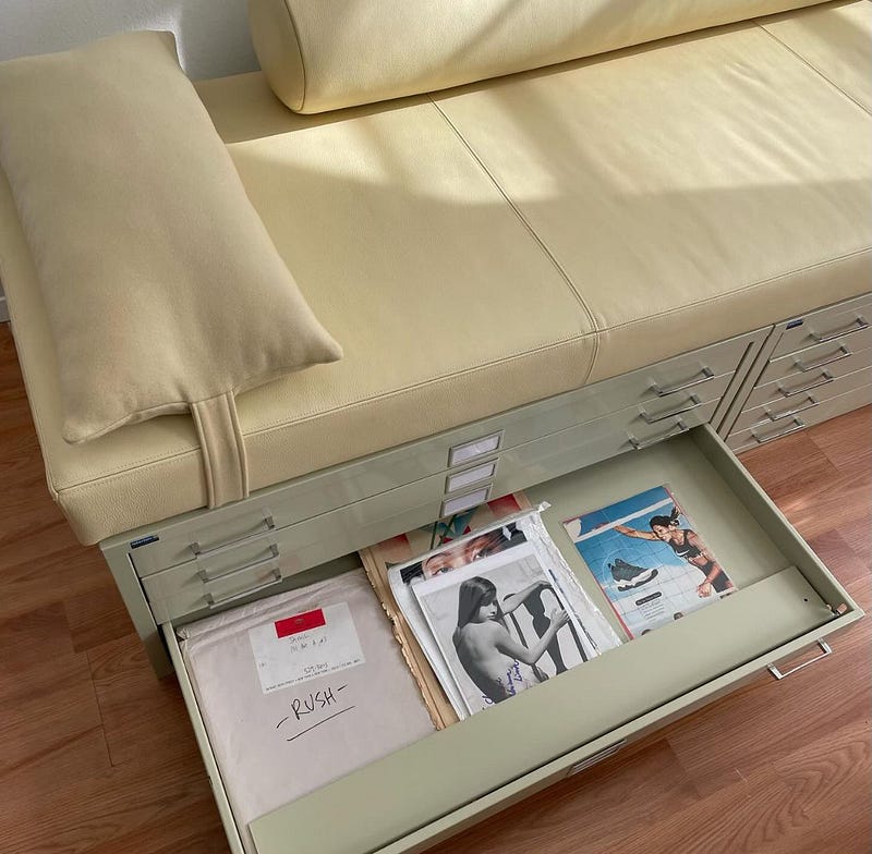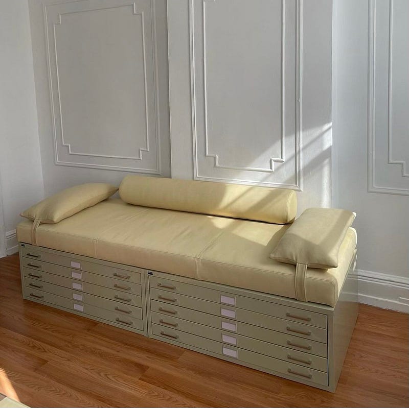 Flat file leather day bed designed by Christine Espinal in collaboration with stylist Mellany Sanchez.