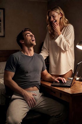 Wife (already smirking, knowing exactly what she’s interrupting): Whatcha watching?