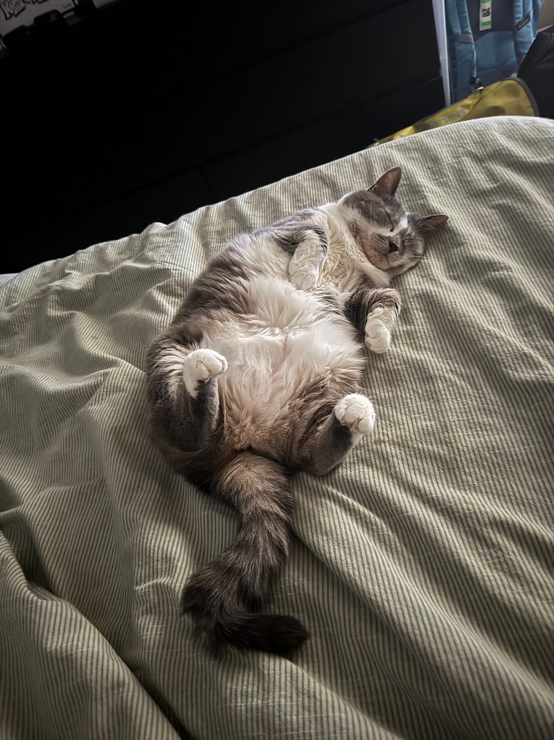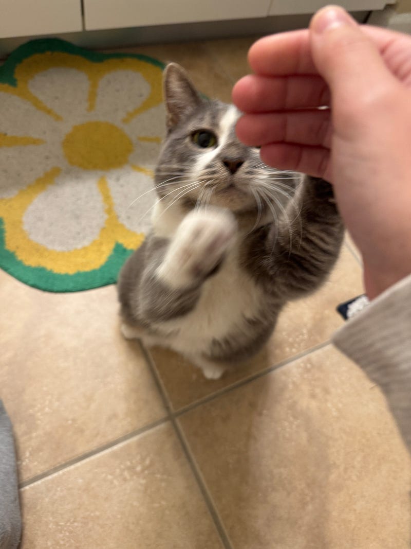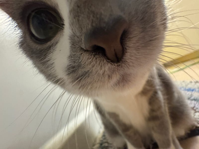 this is Kibby - her legal name is Olivia but she is Kibby to us. she enjoys Youtube Bird TV, laser, belly rubs, head scritches, and sleeping. she does NOT like fire alarms or ambulances (she hates public safety). she is also my biological daughter. i birthed her. thank you for your time.
