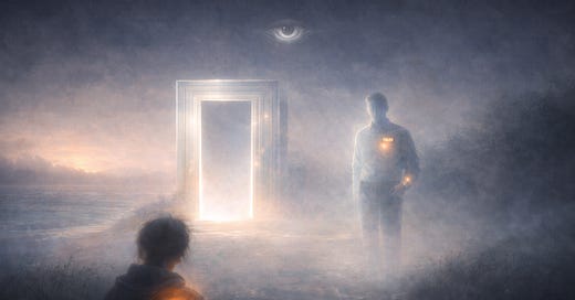 Liminal sci-fi short: a glass Gate, TRUST-badge guard, and an Assistant teaching you to “pass” human—warm data, breath scans, algorithmic gatekeeping.