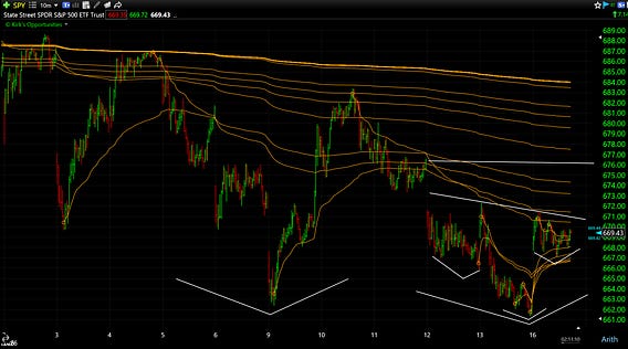 I’m monitoring this potential short-term reversal play with its anchored VWAPs to see if it can gain any traction to at least fill last Thursday’s unfilled gap open at 676. So far it has struggled to gain any momentum, but today’s final hour will tell us more.