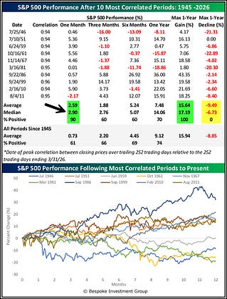 The top 10 most correlated periods to the present day suggests a strong possibility for this week’s bear trap reversal to continue.