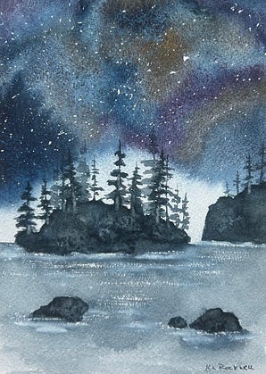 My second painting of the year finished up. It is hard to see in the photo but there is a little bit of shimmer in the sky.