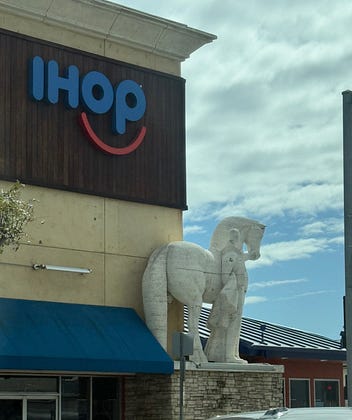 No time to explain, meet me at the IHOP guarded by the regal horse statue