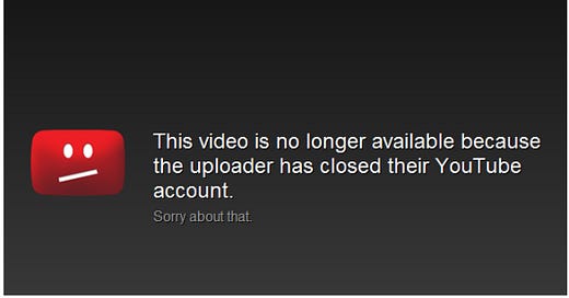 After 2019, I stopped uploading every day, but I stuck with that gonzo method and uploaded 2 - 3 times a week. At one point, I had over 900 videos on YouTube. Now I have less than 700, because YouTube keeps deciding, years after the fact, that some old video of mine suddenly violates their community standards. They remove it and send me an email scolding be for being a bad person.
