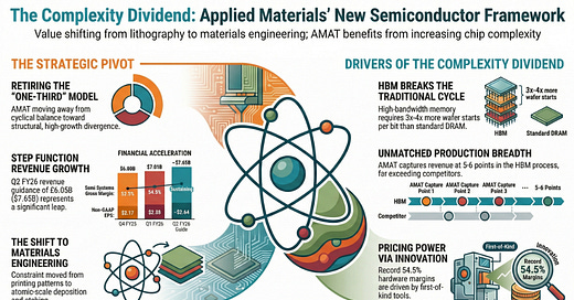Applied Materials’ 1QFY26 wasn’t just a beat. Q2 guidance crushed the Street, and CEO Gary Dickerson publicly retired the industry’s “one-third / one-third / one-third” growth framework.