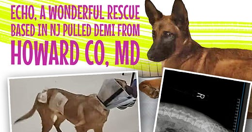Please click on the post below and read all about Demi & her journey. Echo Rescue could use your help in paying for Demi's medical bills. If you can send even just a few dollars, every little bit adds up to alot! And please restack this post so others can celebrate with Demi that she's out of the shelter and into loving safe arms!