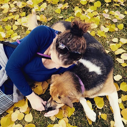 If you find me on a break ANY day of the week, this is what it'll look like, give or take the leaves. My dog is so happy to just find a nice shady spot to lay in the grass and chew on a stick or people-watch. She truly understands the meaning of taking it easy 😁